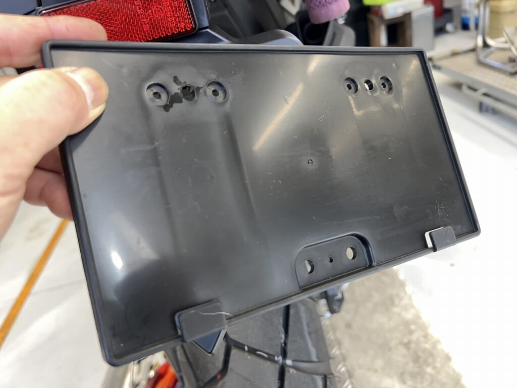 ナンバープレートホルダーを付けるとこのブラケットを少し長穴にする必要があります。