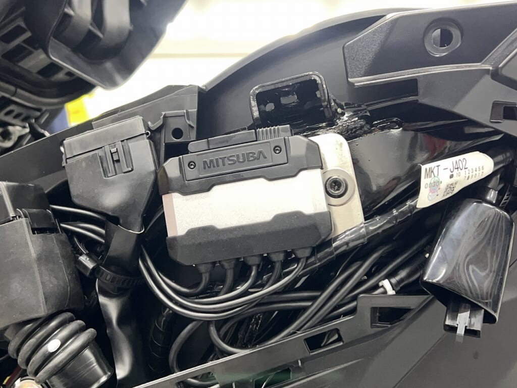 Vehicle: The latest model Honda X-ADV (Model code: RH21). Work: Installed the Mitsuba Sankowa EDR-22G dual-camera drive recorder. Process: The RH21 model has very complex fairings. We carefully disassembled the bodywork to route the cables safely and invisibly inside the frame. Result: A clean, professional installation that looks factory-made. Essential safety gear for modern riding.