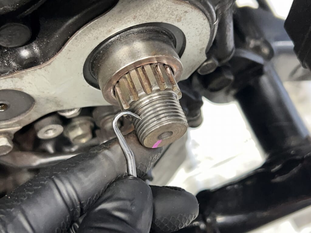 「シャフト側にネジロック残留+新品ロックナットのネジロック」