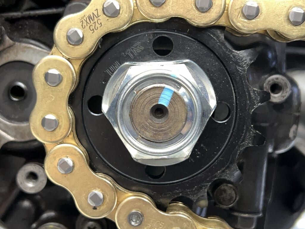 課題: 経年劣化(伸び・固着)したチェーンでは、油冷エンジンのレスポンスやトルクが逃げてしまう。