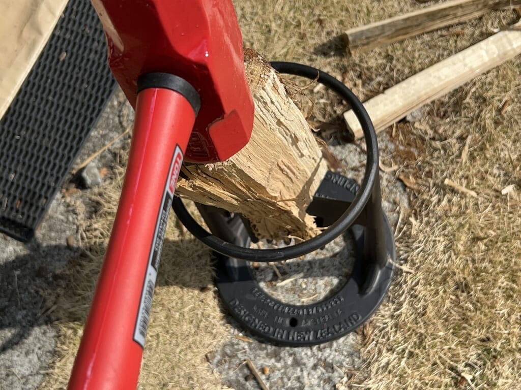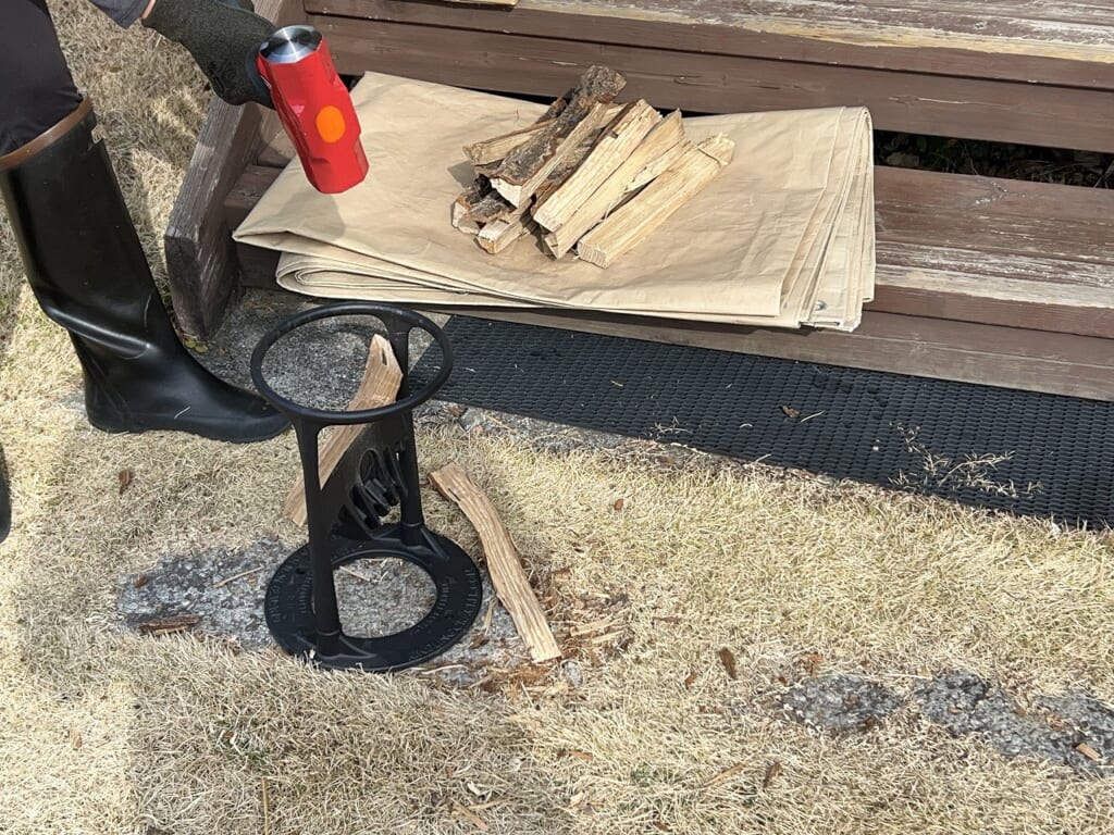 届いたその日に早速、薪割りをしてみたのですが・・・・思うように?割れない。