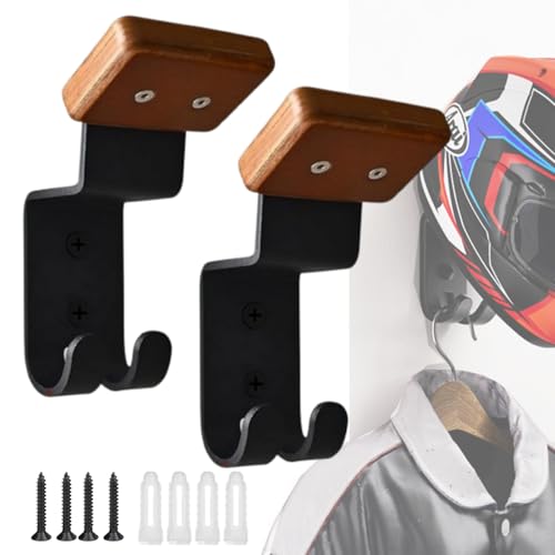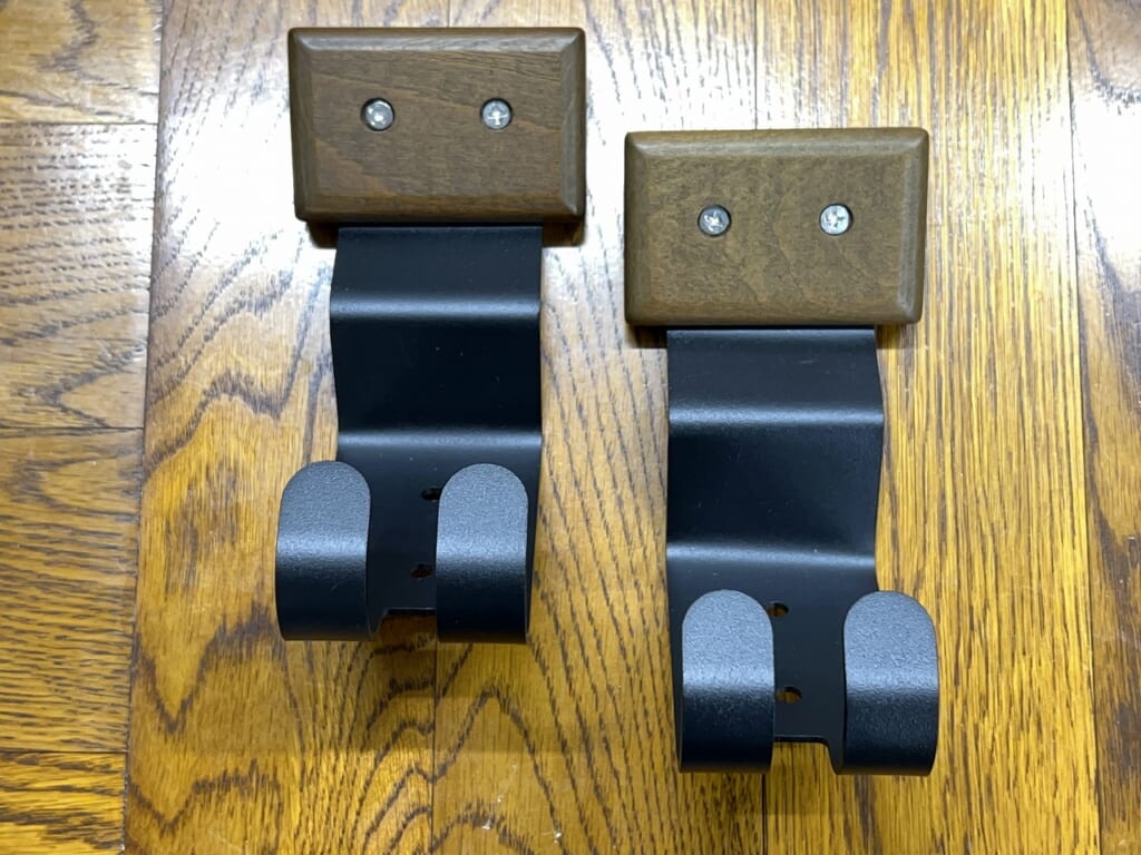 KeiSquare ヘルメットハンガー ヘルメットホルダー ウォールマウント 壁掛け ヘルメットラック フック付き バイク用 ウッド仕様 (2個セット)