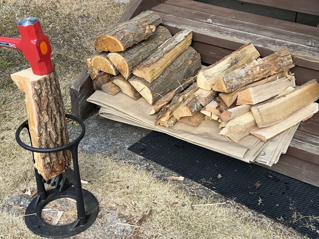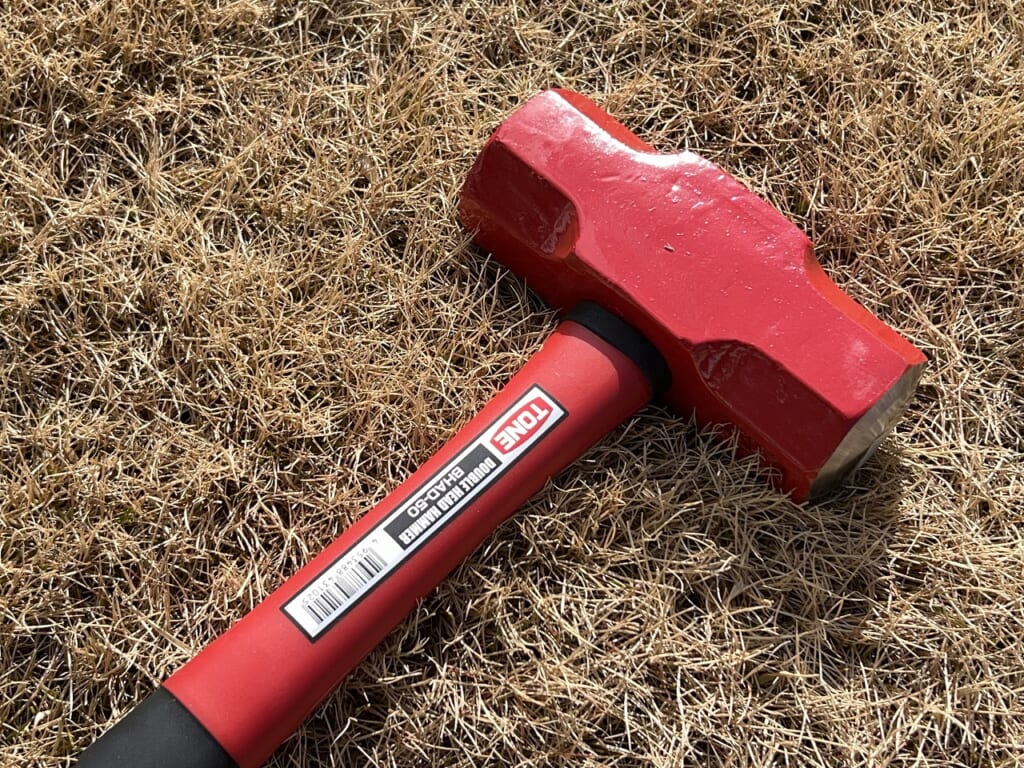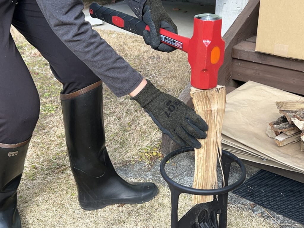 薪割りハンマーは赤!トネ(TONE) 両口ハンマー BHAD-50(2.7Kg)とキンドリングクラッカー 72000の相性がバッチリ!快適に薪割りできるよ。