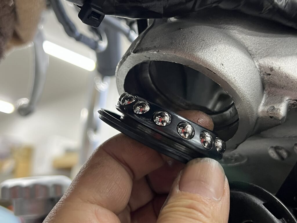 程よい位のステアリング調整だとすぐにシールの当たりが付いてガタが出だしてしまうのです。