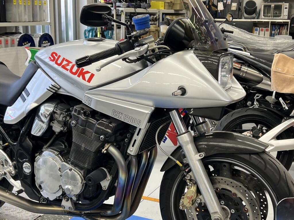 【ユニコーンGSX1200S】油冷カタナの足回り刷新。「スイングアームOH」と「リアキャリパーOH」を同時に進める