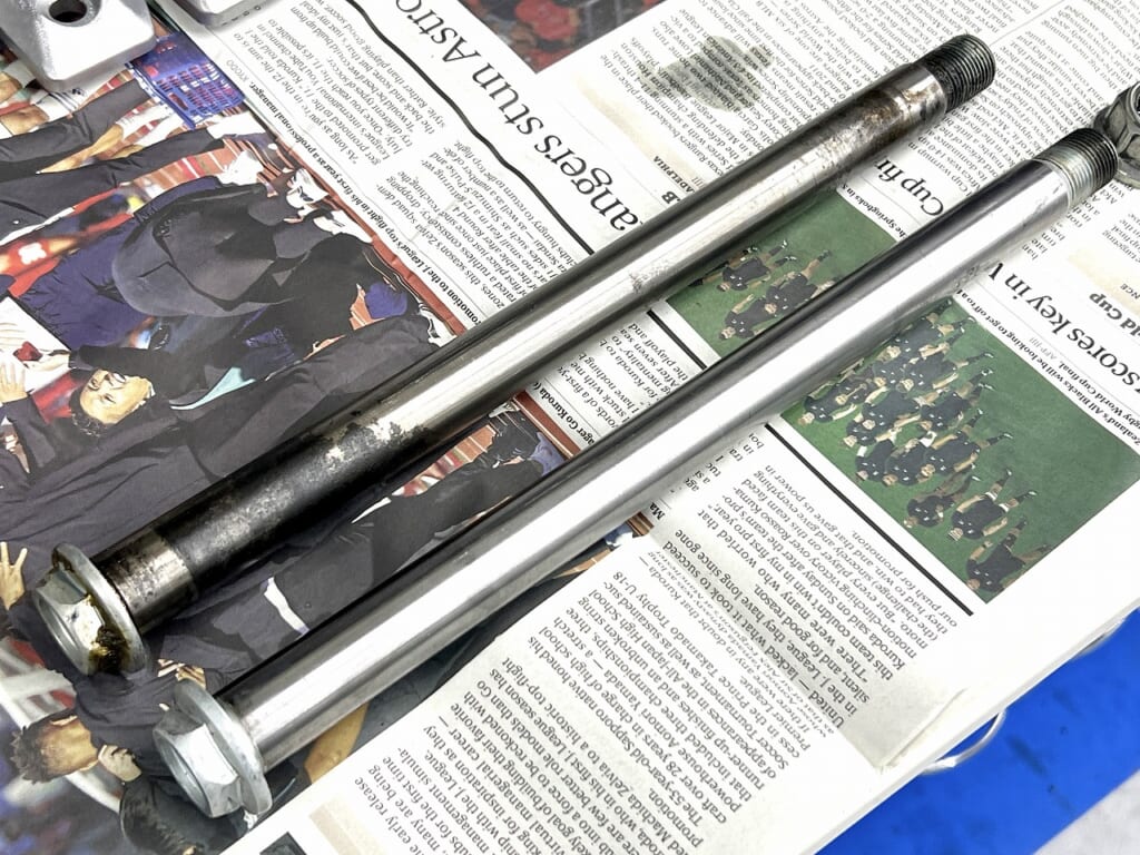 先日26万キロ?のGSX1200Sの彼がピボットシャフトを捨てて行ったので今回活用させて頂きます。