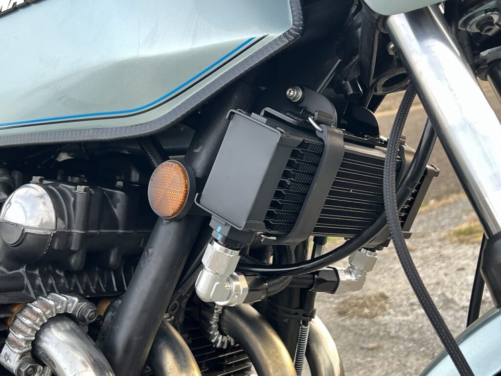 Item: Oil Cooler Kit by Speed Shop Ito, a renowned specialist for Kawasaki Z series. Reason: Upgrading the camshafts (WEB CAM) increased engine heat. Proper heat management is crucial for an air-cooled engine to prevent damage. Review: The cooling performance is outstanding. You can literally watch the oil temperature drop as soon as you start riding and the wind hits the core. It also features beautiful, high-quality fittings. Highly recommended for any tuned Z.