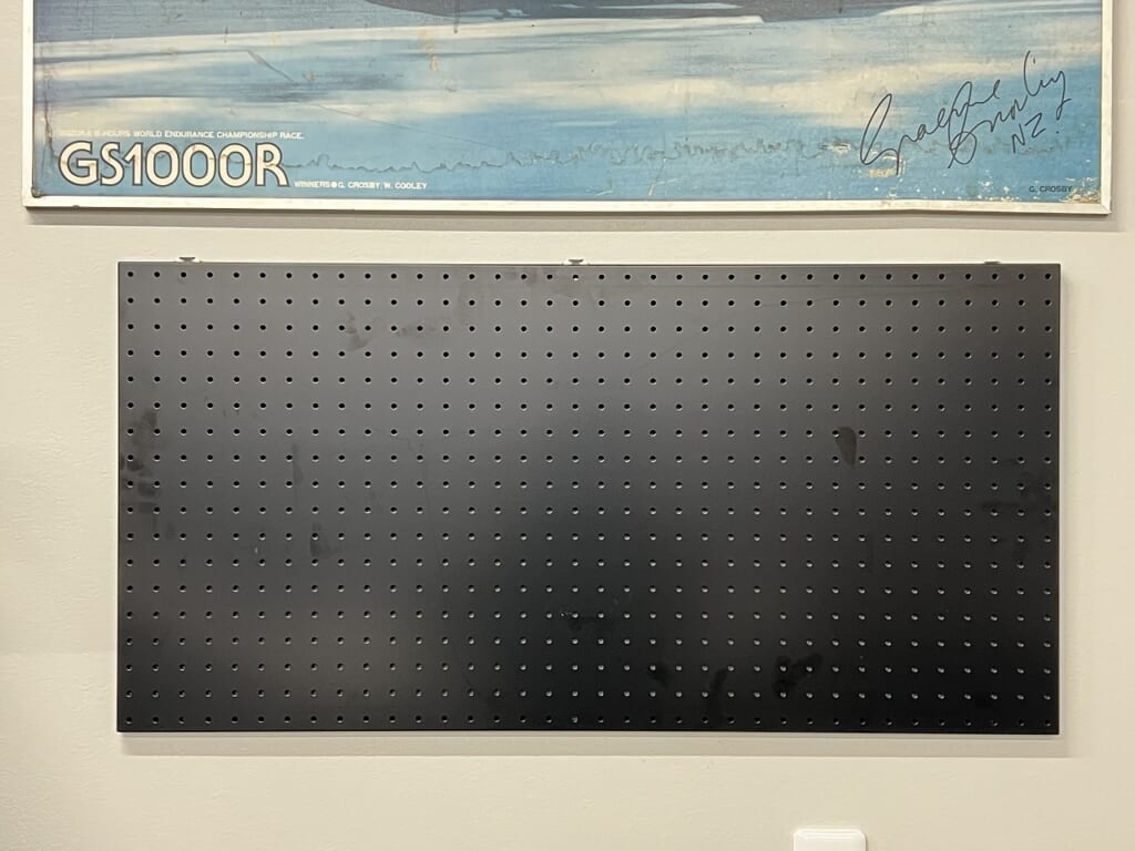 昔から主流のパンチングボードを使って簡単に壁に施工取付してバッチリだよ。