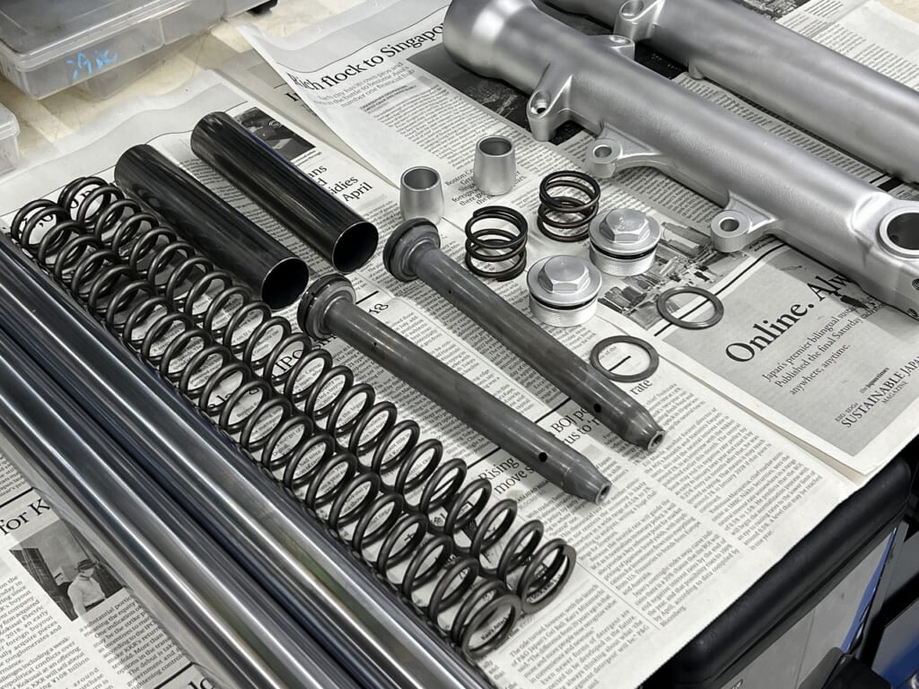 Front Fork OH: Replaced seals and oil to restore proper damping.