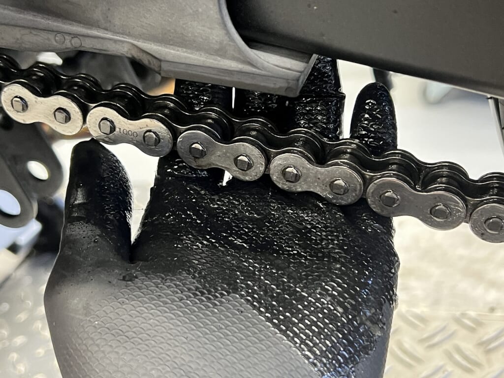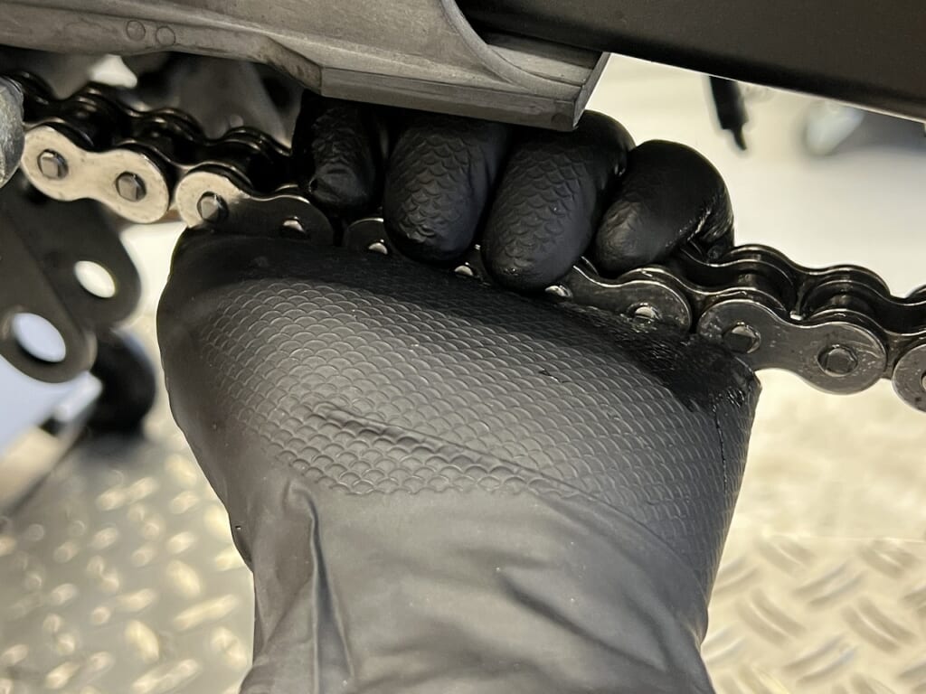 こうやるとリンクが硬い所やチェーン自体の痛み(ザラザラ具合)も感じ取ることができます。