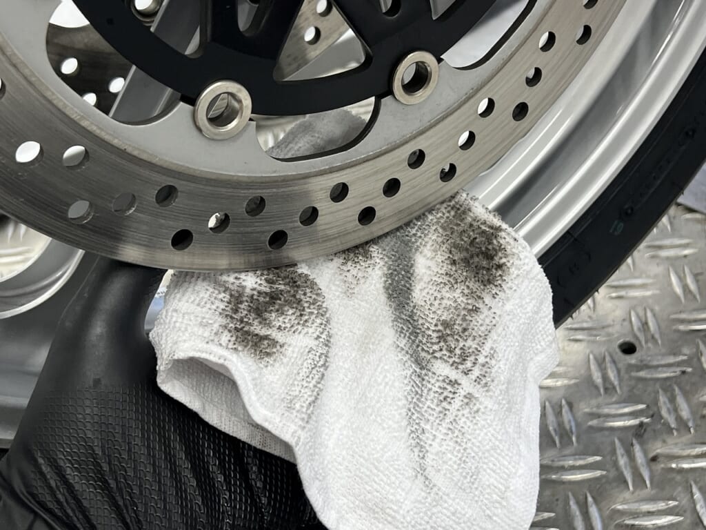 ブレーキディスクは思っている以上にダストがこびり付いてます。