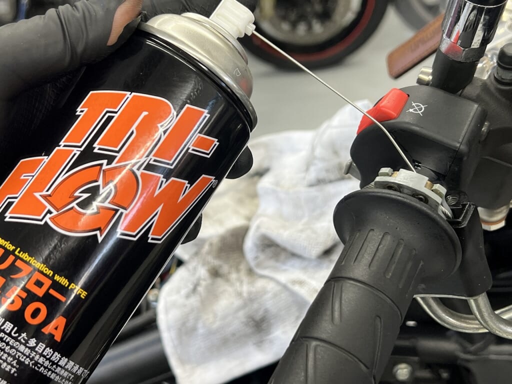 ワイヤー類ちょっとだけ潤滑してあげるだけで全然違います。