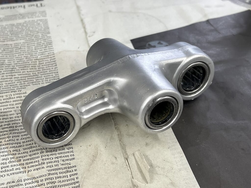 生の特権?ウェットブラスト処理をしてからベアリングを組付けていきます。