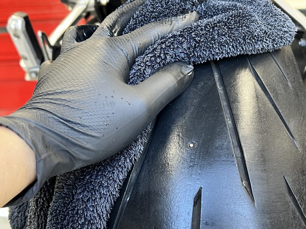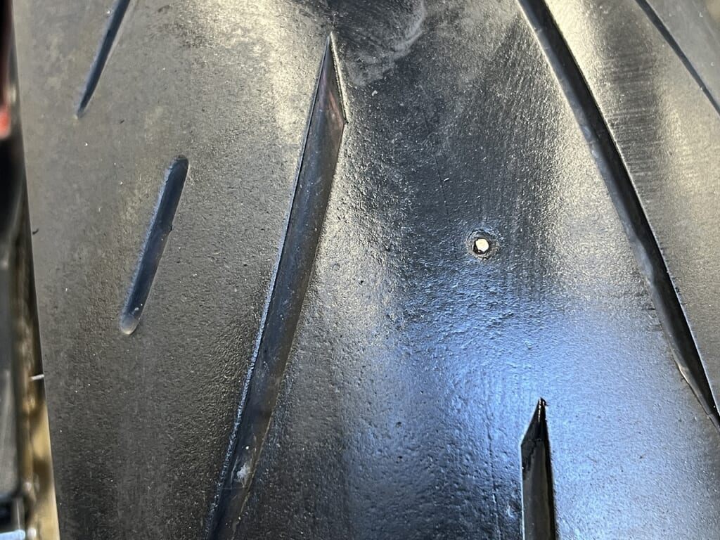 Vehicle: Suzuki Bandit 1200 K6. Work: Spark plug replacement and flat tire repair. Details: The massive overhaul on this oil-cooled machine is almost complete! For the final touches, I replaced all four spark plugs to ensure a strong spark and stable idling. During the final inspection, I also found a nail embedded in the rear tire! I’m so glad I caught it in the garage before the customer went for a ride. Verdict: The puncture is safely patched, the engine is purring, and all remaining tasks are finished. This beautiful bike is finally ready to hit the road!