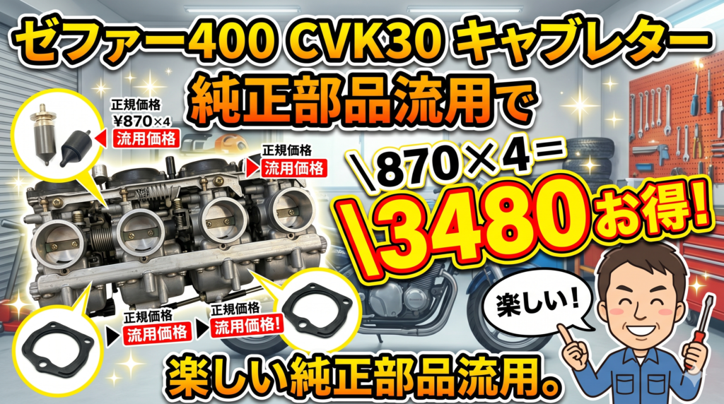 ゼファー400 CVK30キャブレター修理:純正部品流用で3,480円お得にする手順