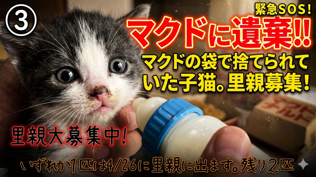 「マクドの袋で捨てられていた子猫。里親募集!」残り2匹!
