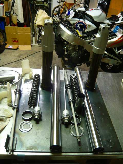さてイチ洗いが完了したフォークです★ 拭き取りと確認でいいかな?新品っていいなぁー本当に! フォークの組付け キャリパーシール交換 マスターシール交換... -